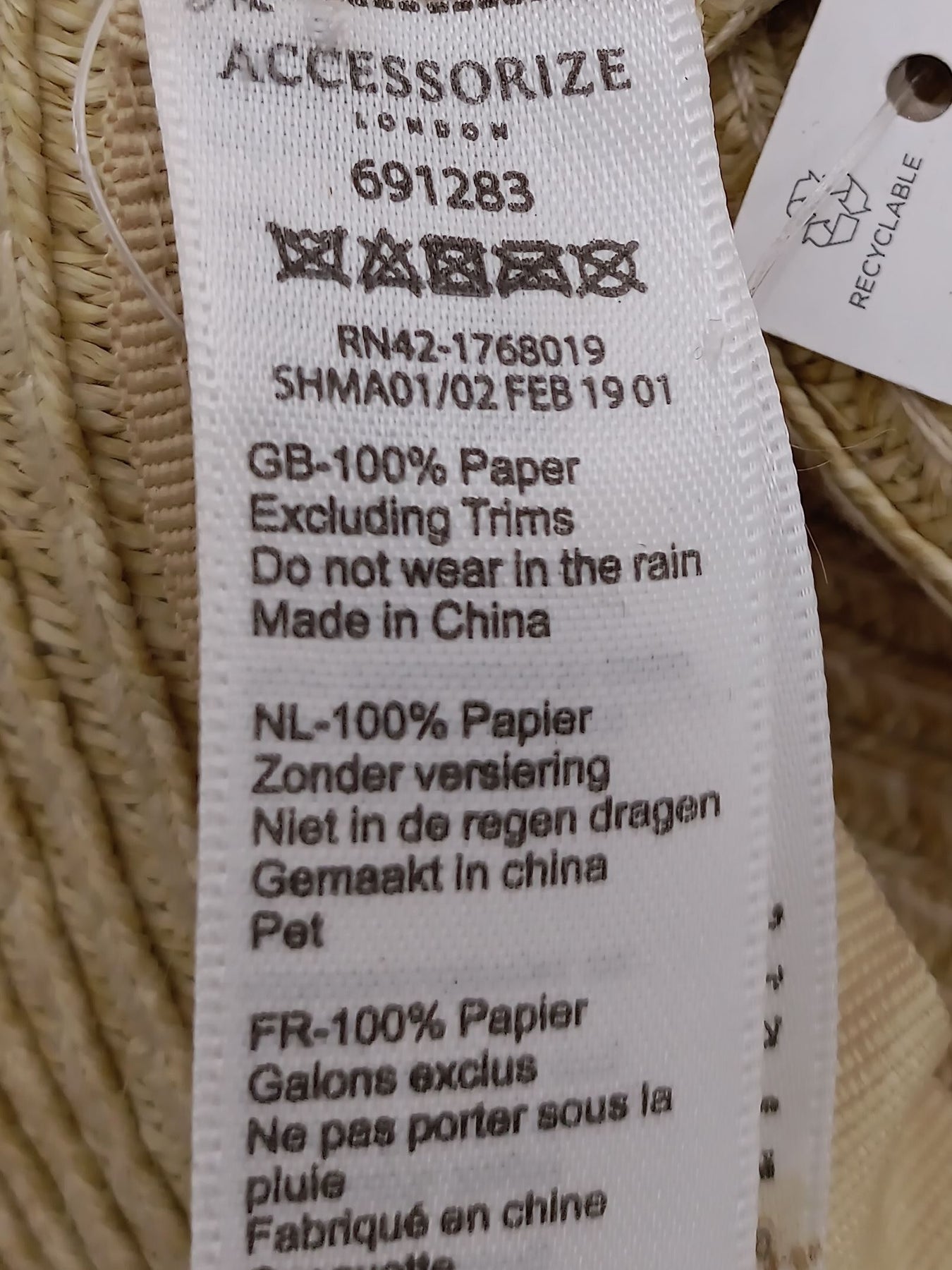 This item still has its original tags attached.