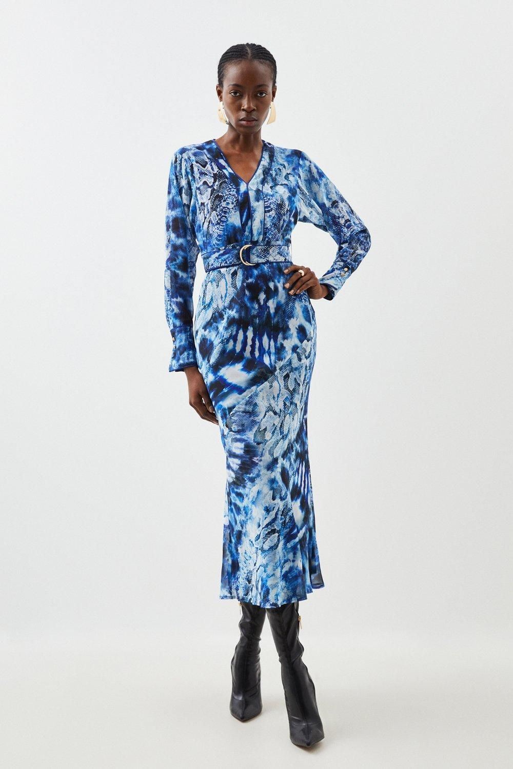 Karen Millen A-Line Midi Dress UK8 in Blue RRP £109