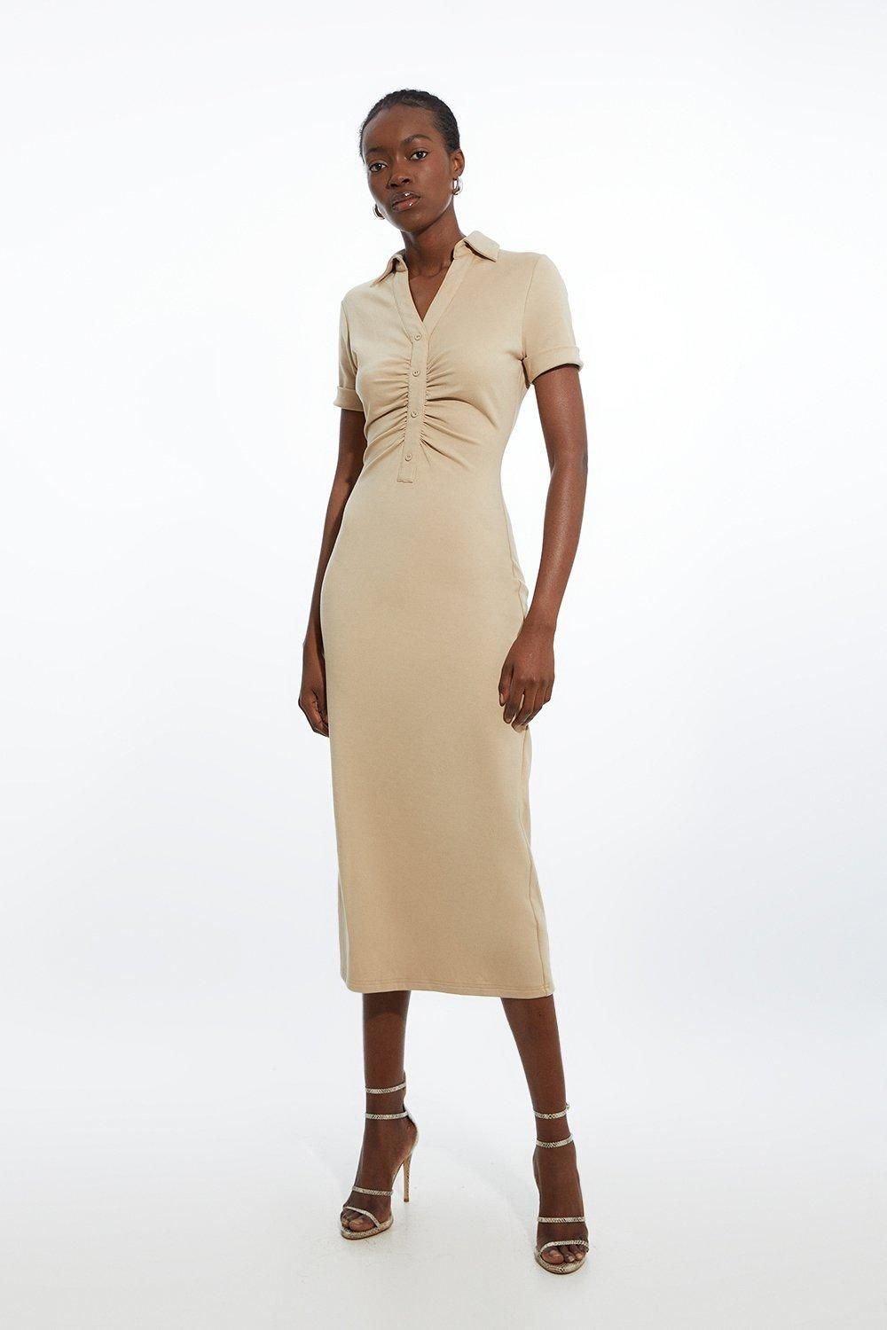 Karen Millen Bodycon Midi Dress S in Tan RRP £99