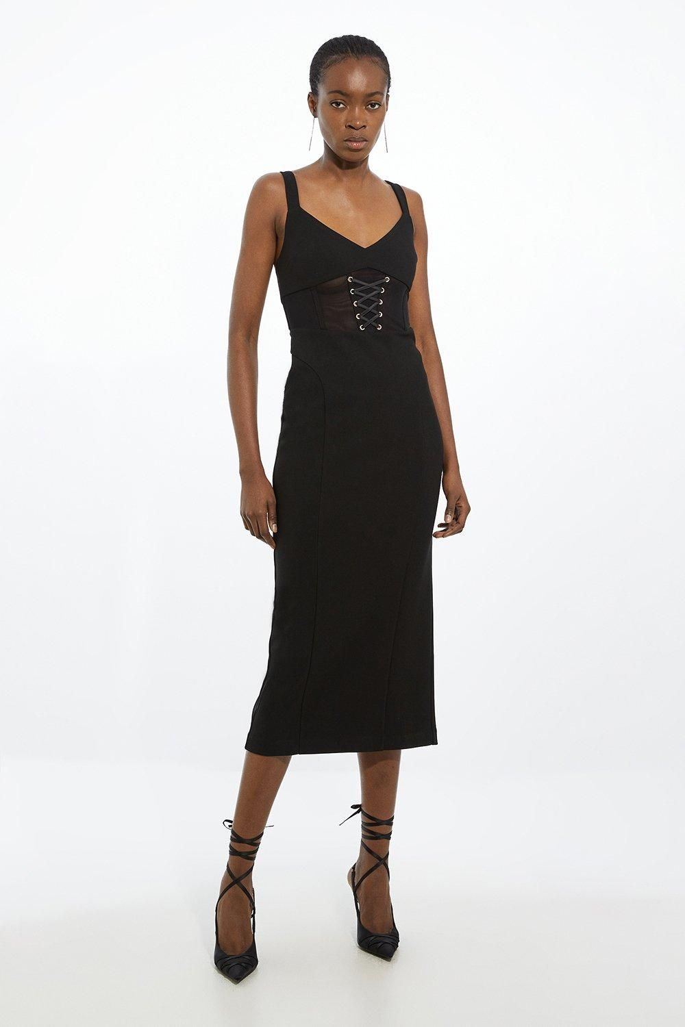 Karen Millen Bodycon Midi Dress UK12 in Black RRP £149