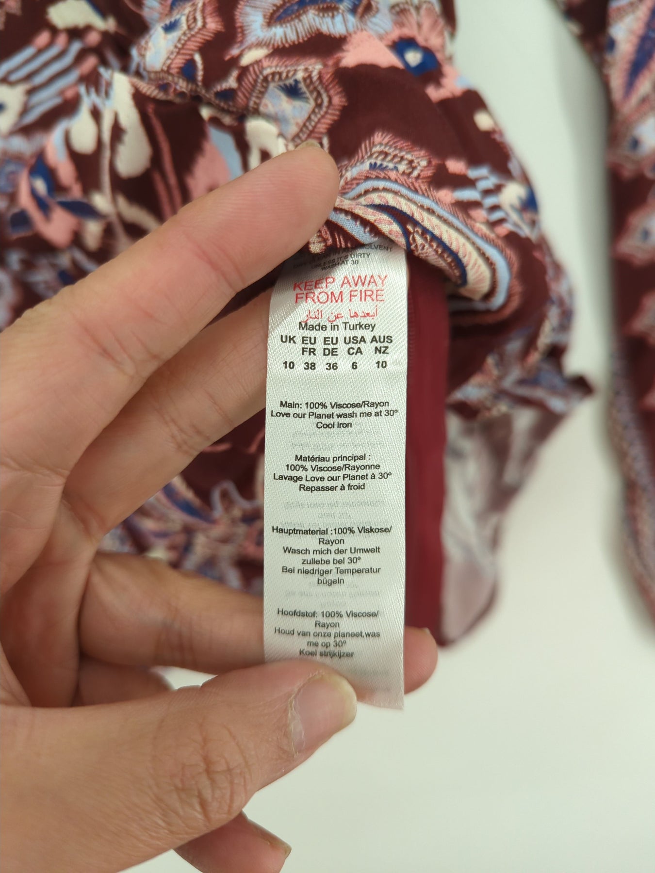 This item still has its original tags attached.